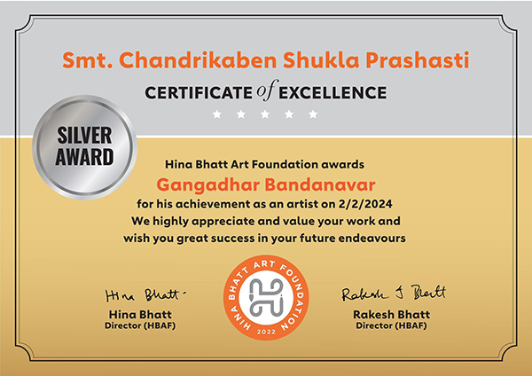Smt. Chandrikaben Shukla Prashasti Silver Award for excellence as an artist goes to Gangadhar Bandanavar. (footprint of past)